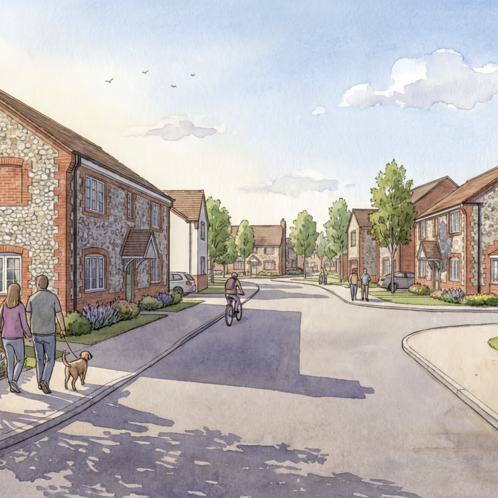 No. The masterplan shown is illustrative only. Phoenix Strategic Land is applying for an outline planning application with all matters reserved, except access. All final details of appearance, layout, scale and landscape would be applied for in a follow-up reserved matters planning application. This illustrative design and visualisations demonstrate how the site could be developed and will continue to evolve as feedback is received and technical work is completed.